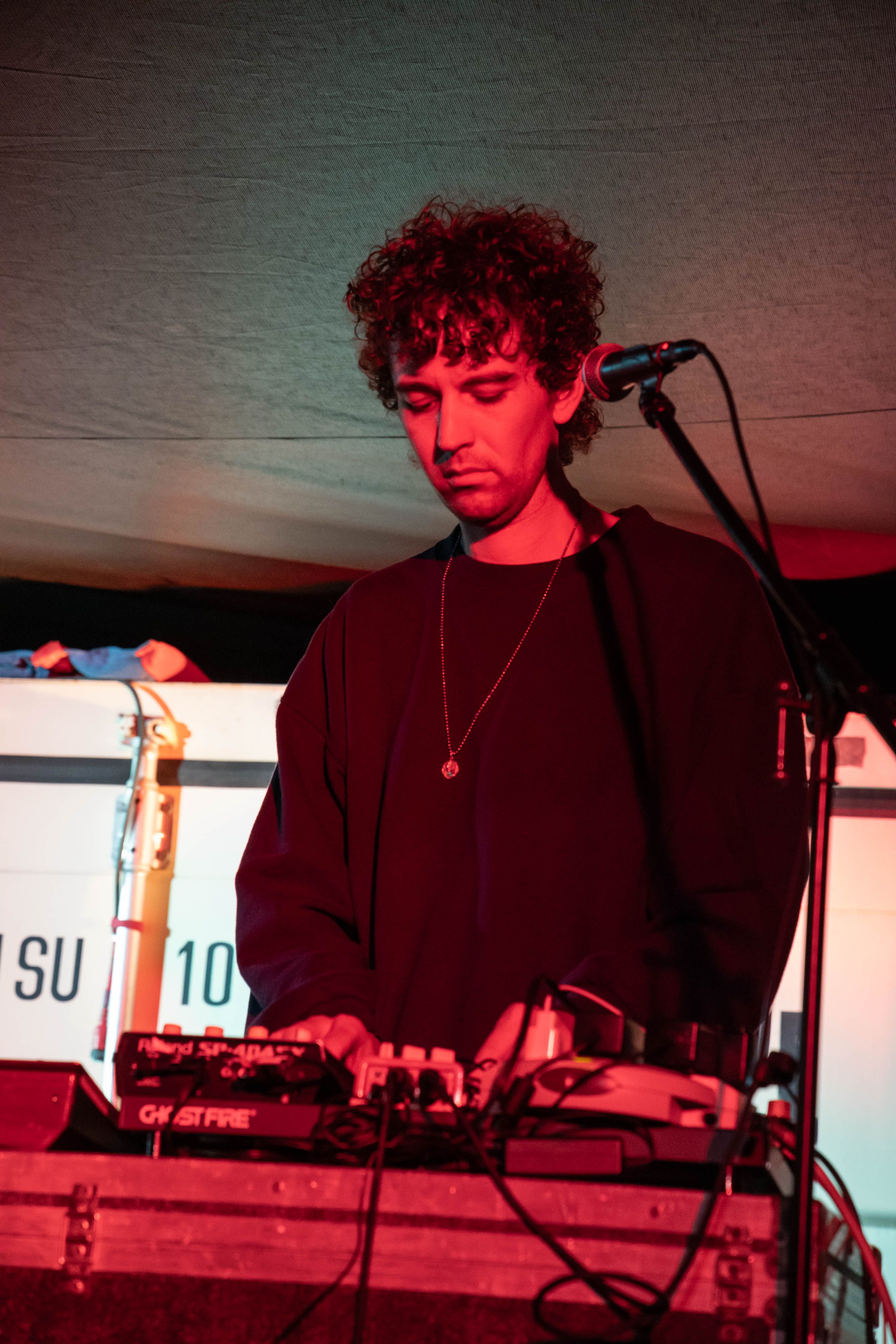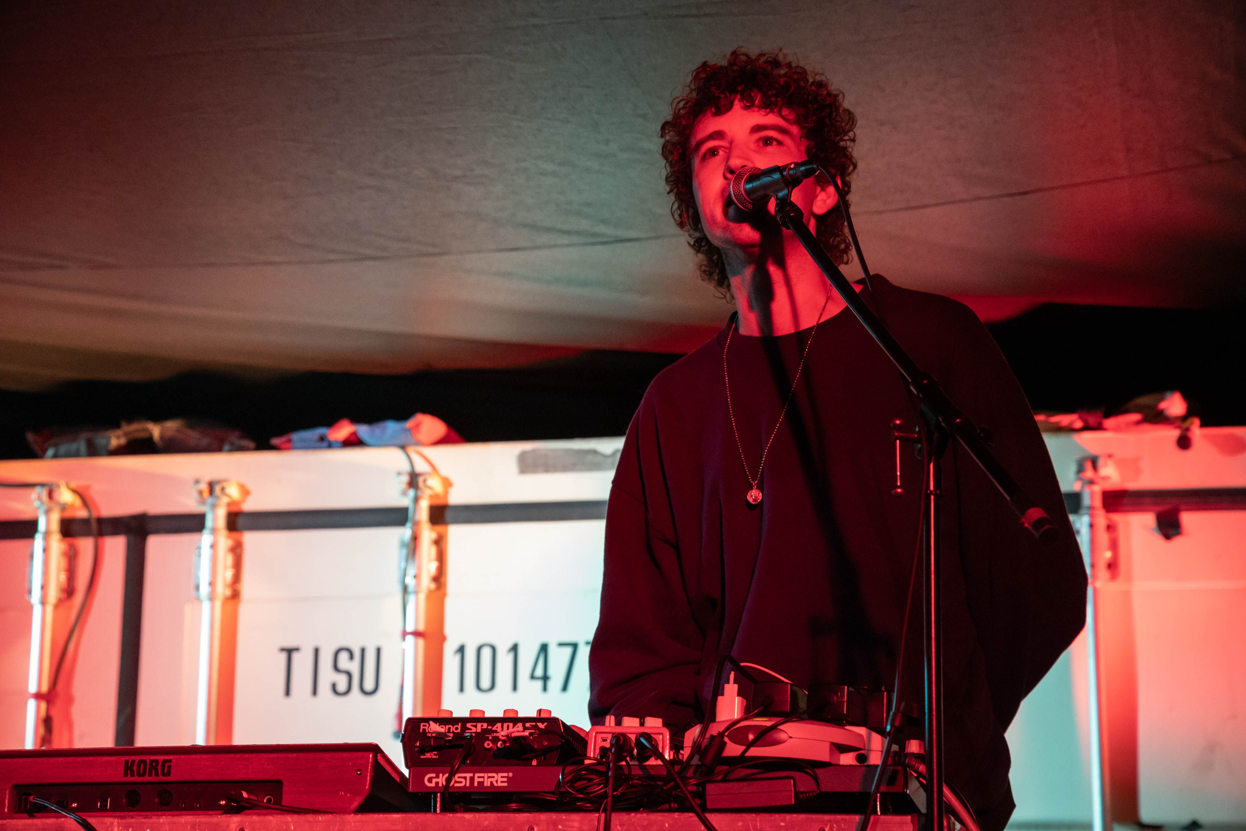 Cindy Lee (aka Patrick Flegel) played the first headlining set, taking the stage in a shiny gold dress, fur-lined white jacket and killer white boots. Their set didn’t have any of the more experimental stuff, focusing on their 50s pop-inspired songs instead. There was a kind of wabi sabi, tragic vibe to the performance in the best possible way. Between the amazing clothes, the harsh spotlights and the music, it felt like a Twin Peaks fever dream.