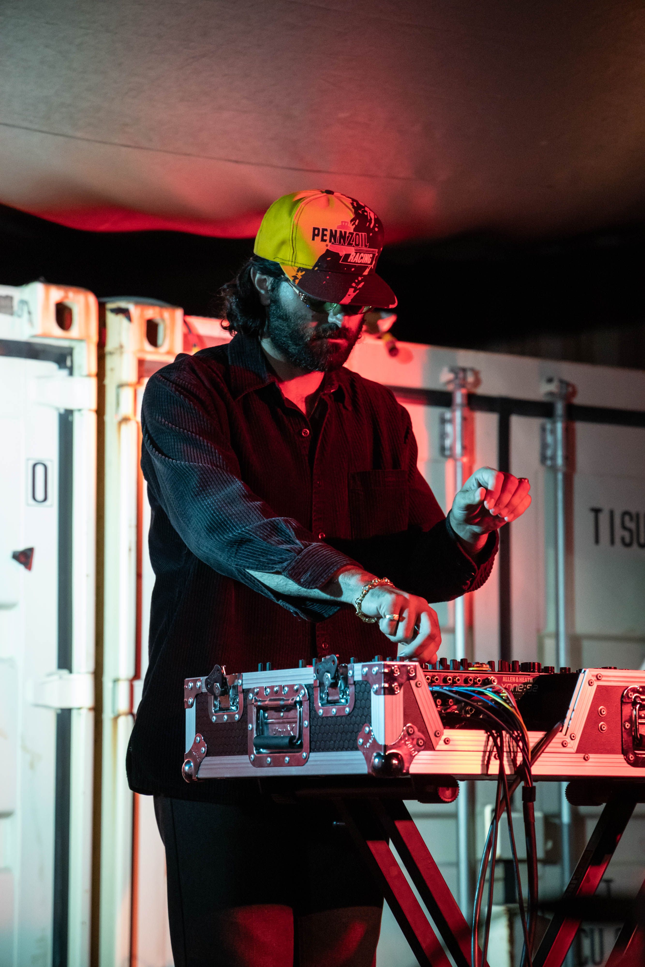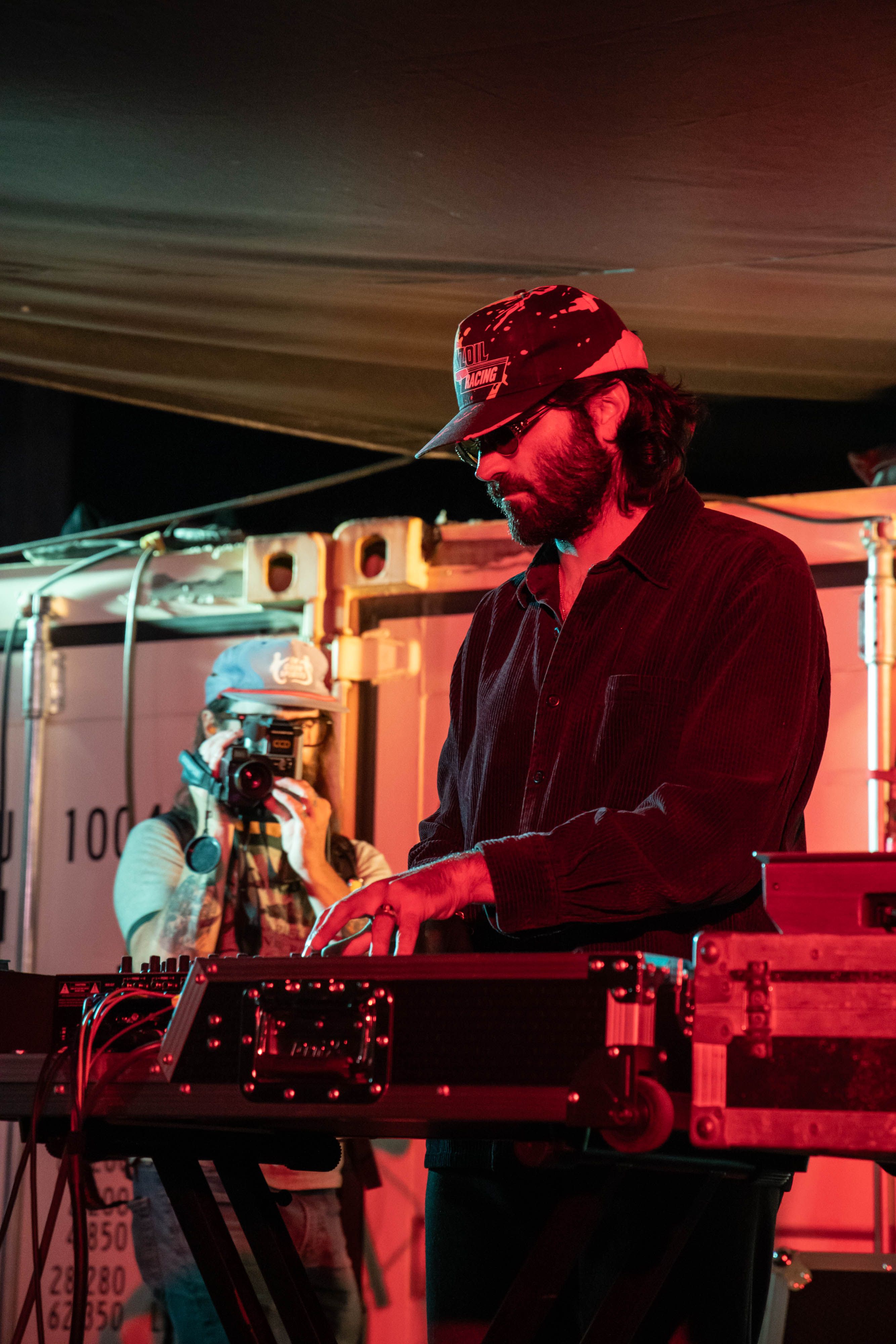 Freak Heat Waves followed shortly after, playing a set that worked through every track on Mondo Tempo. From the sax skronk of “The Time Has Come”, to the ghostly diva wails of “Off My Mind”, every sample felt just right. It takes skill and restraint to choose the few elements that take a track from “cool” to “wow”. The pair, consisting of Steven Lind and Thomas Di Ninno, were mostly content to let the tracks shine without too much noodling, only adding the occasional splash of delay to spice things up. Di Ninno’s deep baritone was the secret weapon, coating everything with a sheen of unease. His ominous lyrics, “I won’t stand in your way / If you’re not in mine” delivered in a deadpan were both amusing and menacing.