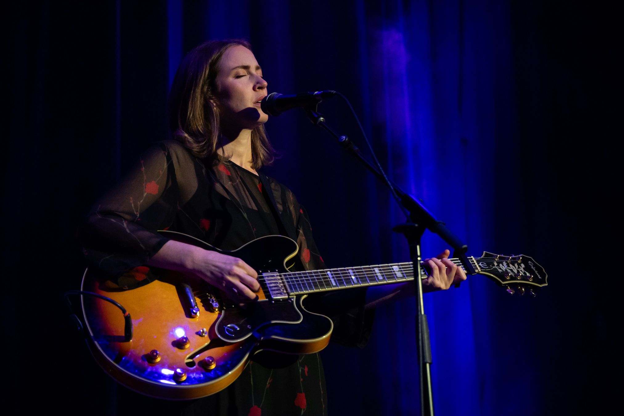 A blue light illuminated the stage as Georgas’ band took their places. As melodic music began to play, Georgas joined them on stage, quietly checking the tuning on her guitar before beginning the show with “Scratch”, the first song on I’d Be Lying.
