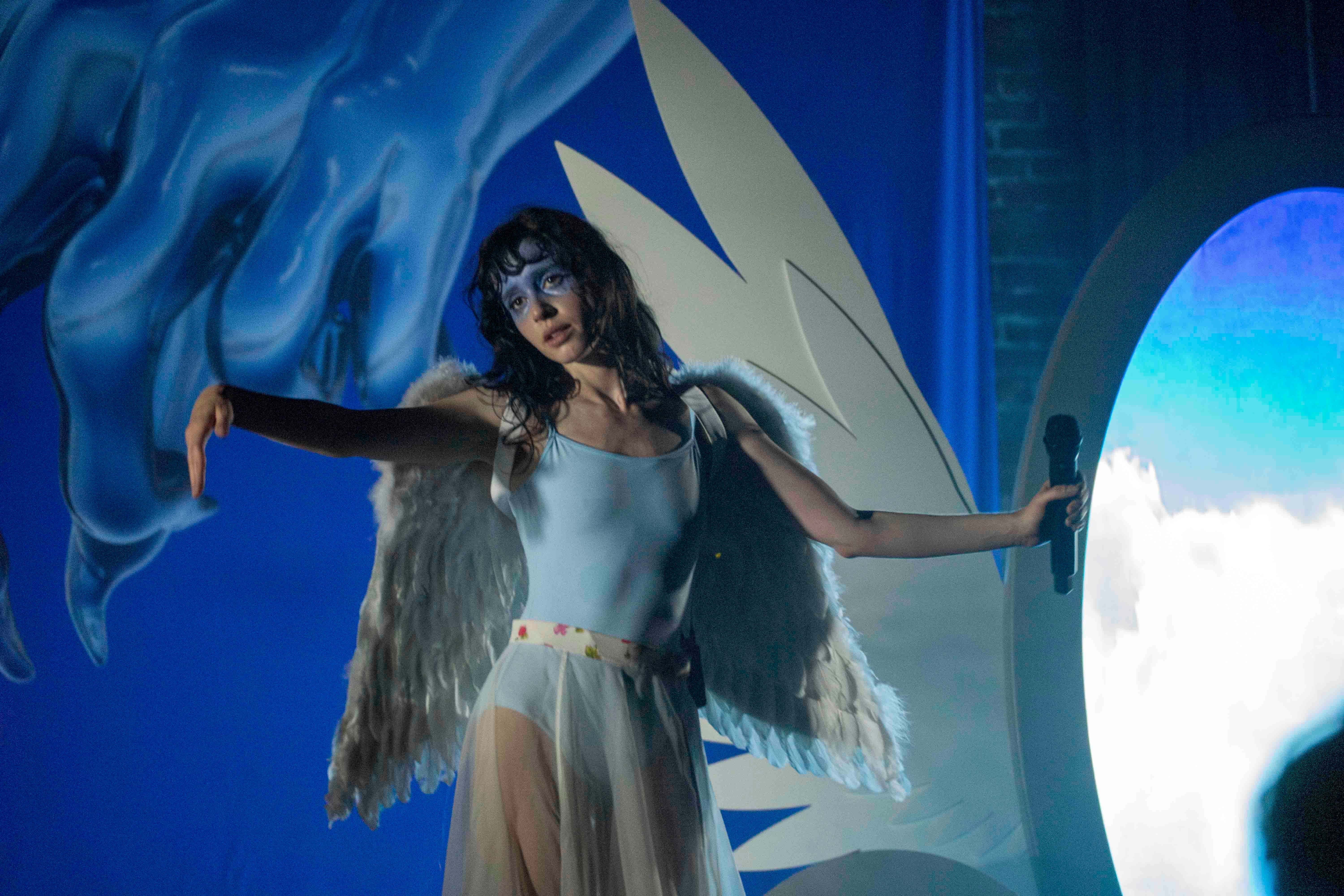 On the bus ride home, your memory starts to return and you begin to piece together what happened. You remember dressing up for a Magdalena Bay concert—yes, that was the name of the band! There were four of them on stage… And the lead singer, she really stood out. Her name was Mica Tenenbaum, and you can picture her dancing and bouncing across the stage for the entirety of the show. There were even multiple costume changes… Huh.
